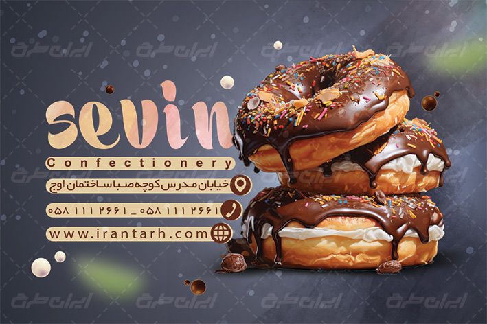 طرح کارت ویزیت شیرینی سرا شامل:عکس دونات ، وکتور، لیبل و شیپ های کاربردی می باشد که توسط طراحان ایران طرح در نرم افزار فتوشاپ طراحی شده است. به دلیل لایه باز بودن (قابل ویرایش توسط کاربران در نرم افزار فتوشاپ Adobe Photoshop) بودن و کیفیت بالای عناصر و المان های استفاده شده در طرح، می توانید از این طرح علاوه بر چاپ کارت ویزیت (به صورت عمودی و دورو)، از سایر موارد تبلیغاتی از جمله استوری اینستاگرام و دیگر پلت فرم های فضای مجازی بهره ببرید.
