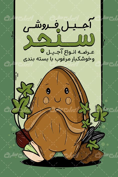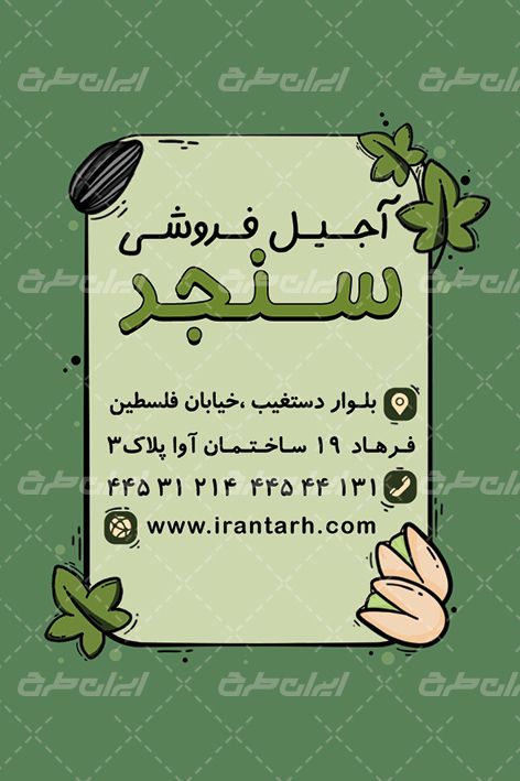- همنشینی مناسب رنگ سبز با طرح آجیل فروشی