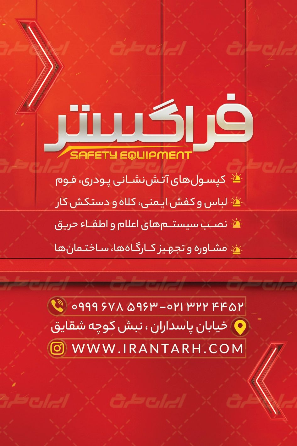 مشخصات فنی طرح لایه باز کارت ویزیت تجهیزات ایمنی و آتش نشانی