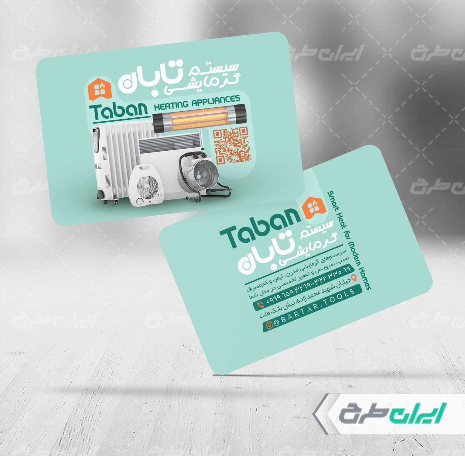 - طراحی ساده و کاربردی کارت ویزیت فروشگاه لوازم حرارتی