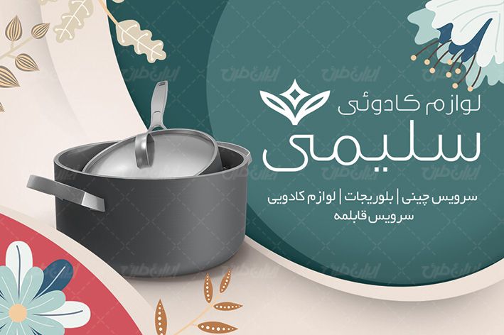 کارت ویزیت لایه باز فروشگاه لوازم آشپزخانه، فروشگاه لوازم آشپزخانه، کارت ویزیتفروشگاه لوازم آشپزخانه ، طرح کارت ویزیت فروشگاه لوازم آشپزخانه، عکس با کیفیت ظرف چینی، گل، لیبل، شیپ های کاربردی