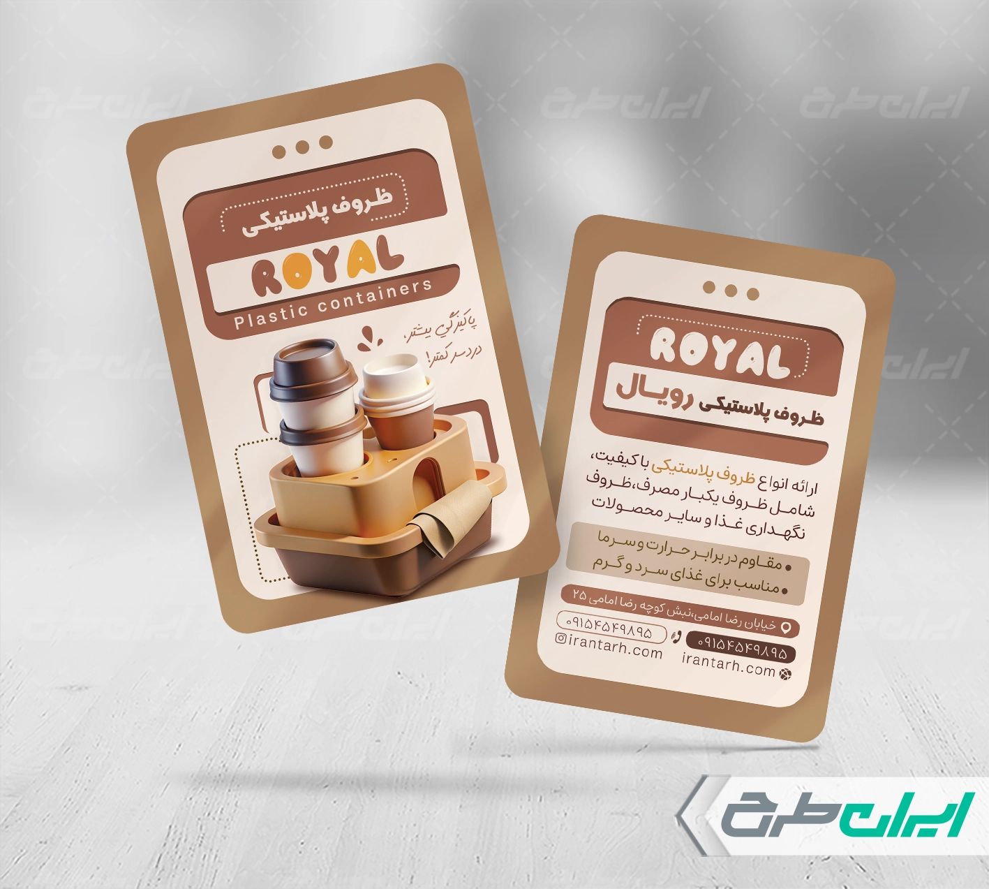 طرح کارت ویزیت فروشگاه ظروف پلاستیکی شامل: