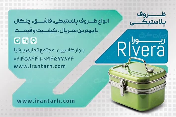 - استفاده مناسب از عکس با کیفیت ظروف پلاستیکی که مناسب طرح کارت ویزیت لایه باز فروشگاه ظروف پلاستیکی می باشد.