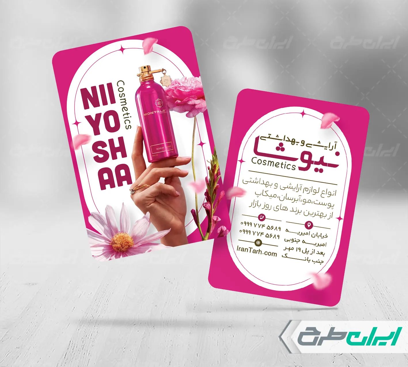 عناصر استفاده شده در طرح کارت ویزیت فروشگاه لوازم آرایشی