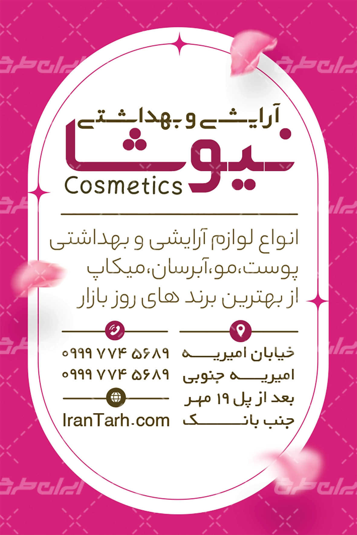 کارت ویزیت فروشگاه لوازم آرایشی
