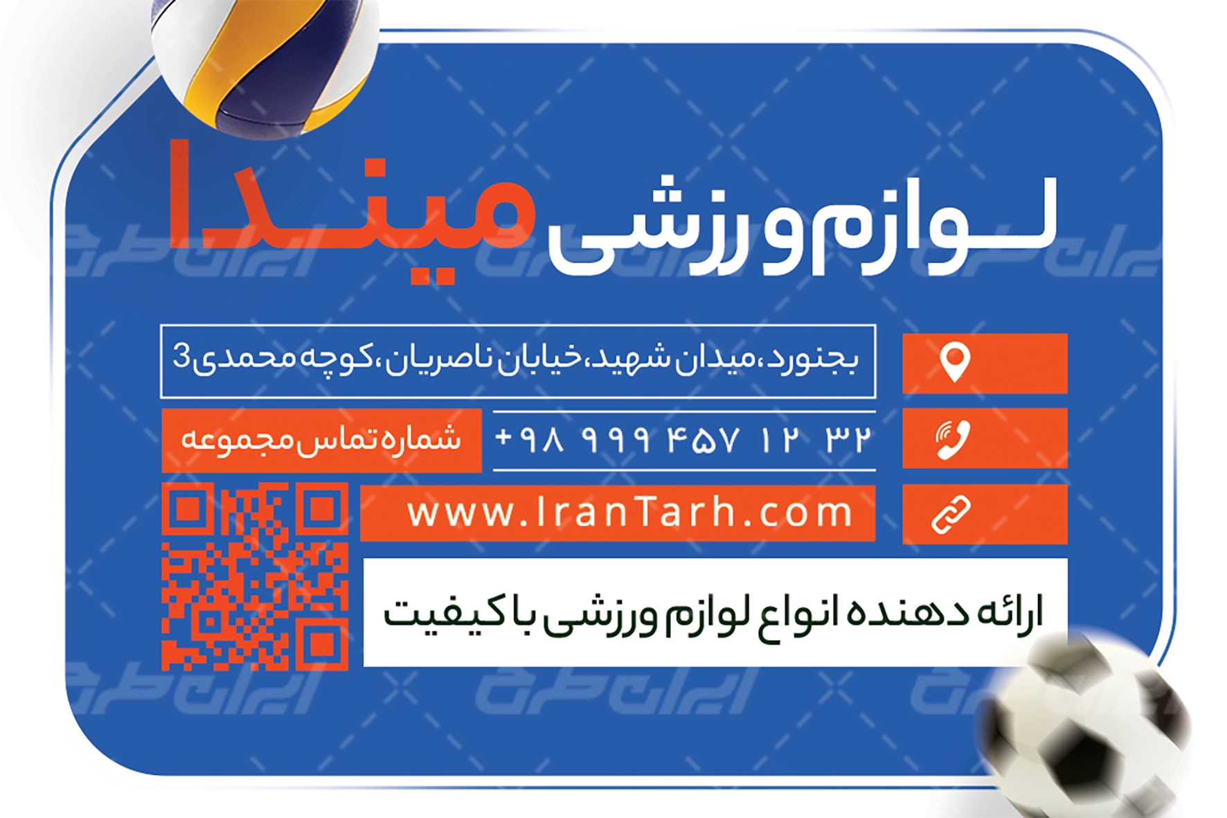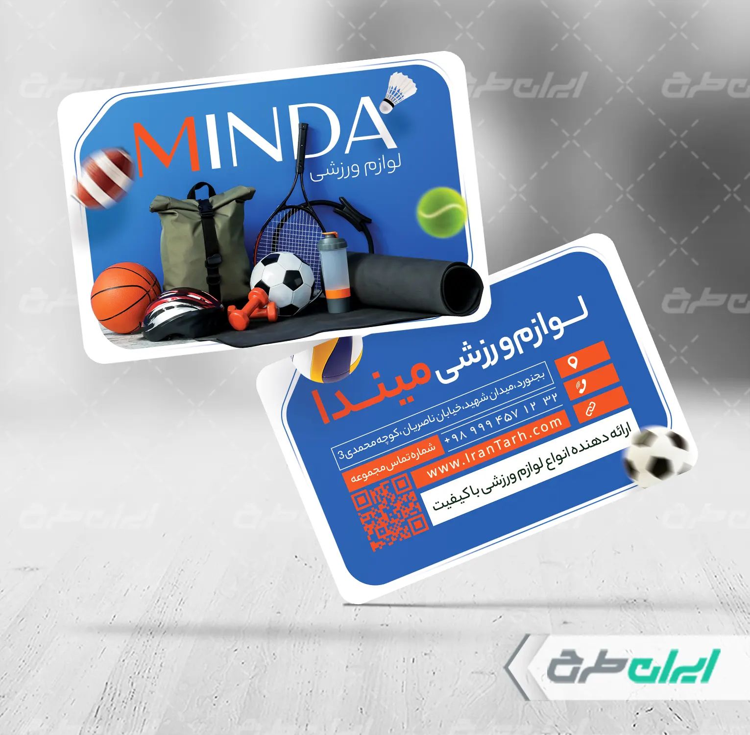 ایران طرح کارت ویزیت فروشگاه لوازم ورزشی را جهت تبلیغات و بازاریابی این فروشگاه ها، طراحی و در دسترس کاربران سایت قرار داده است.