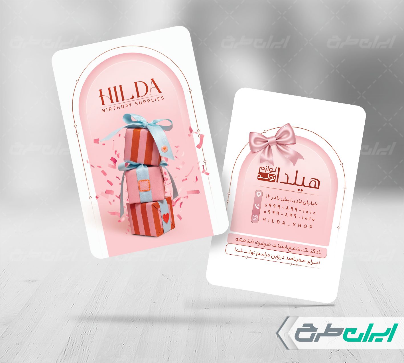 طرح کارت ویزیت فروشگاه تم تولد، جهت بازاریابی و تبلیغات این دسته از فروشگاه ها توسط تیم طراحان ایران طرح طراحی و در دسترس کاربران سایت قرار گرفته است.
