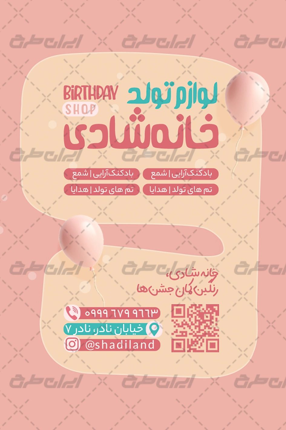 کارت ویزیت فروشگاه لوازم و تم تولد