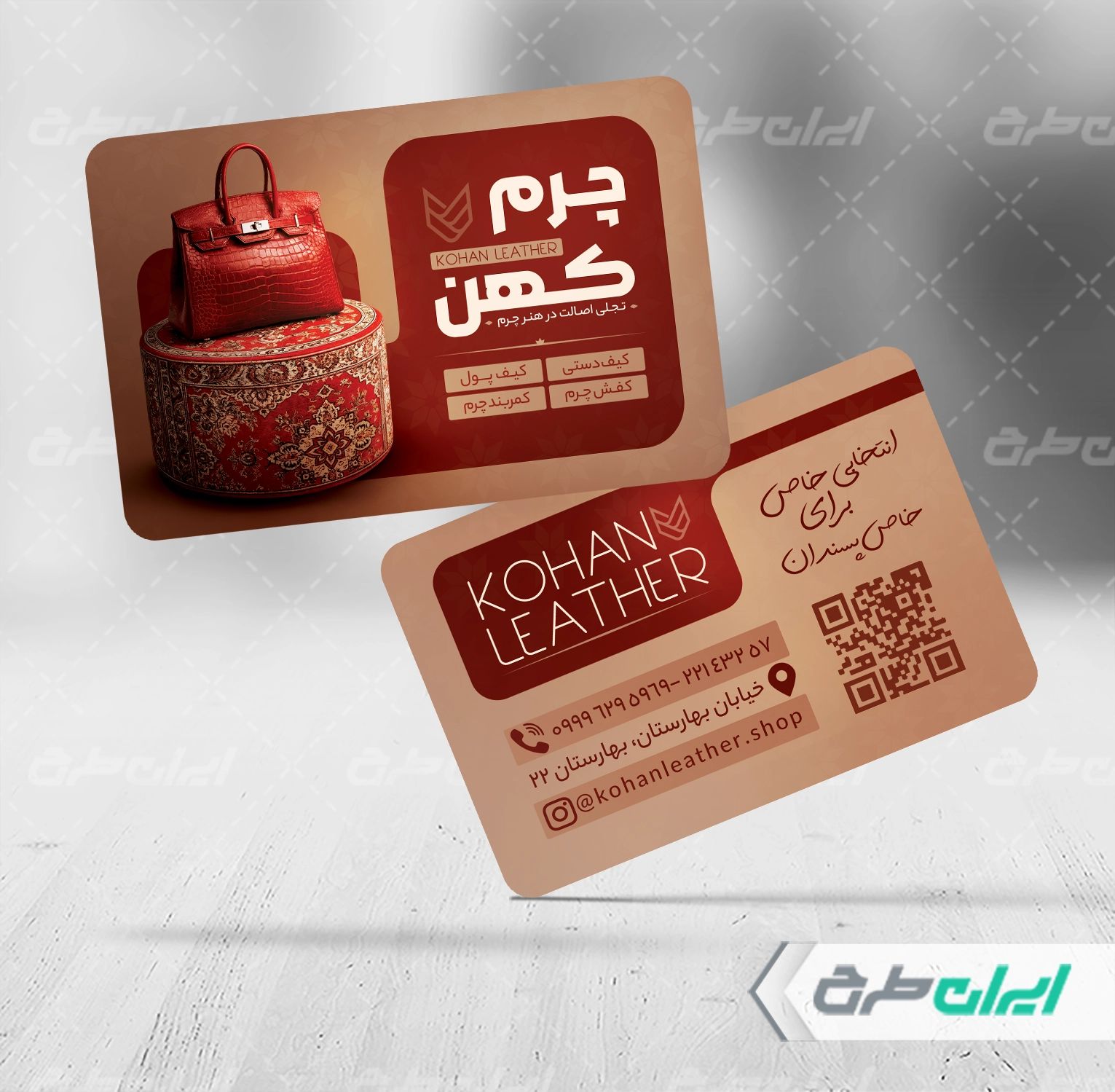 طرح کارت ویزیت فروشگاه چرم شامل: