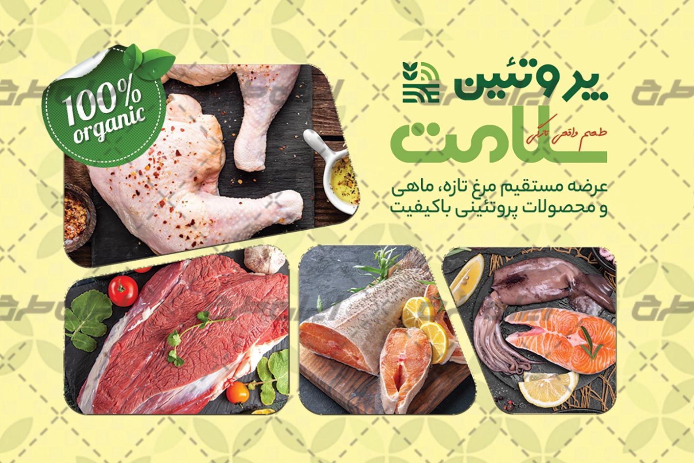 طرح کارت ویزیت فروشگاه مرغ و ماهی شامل: