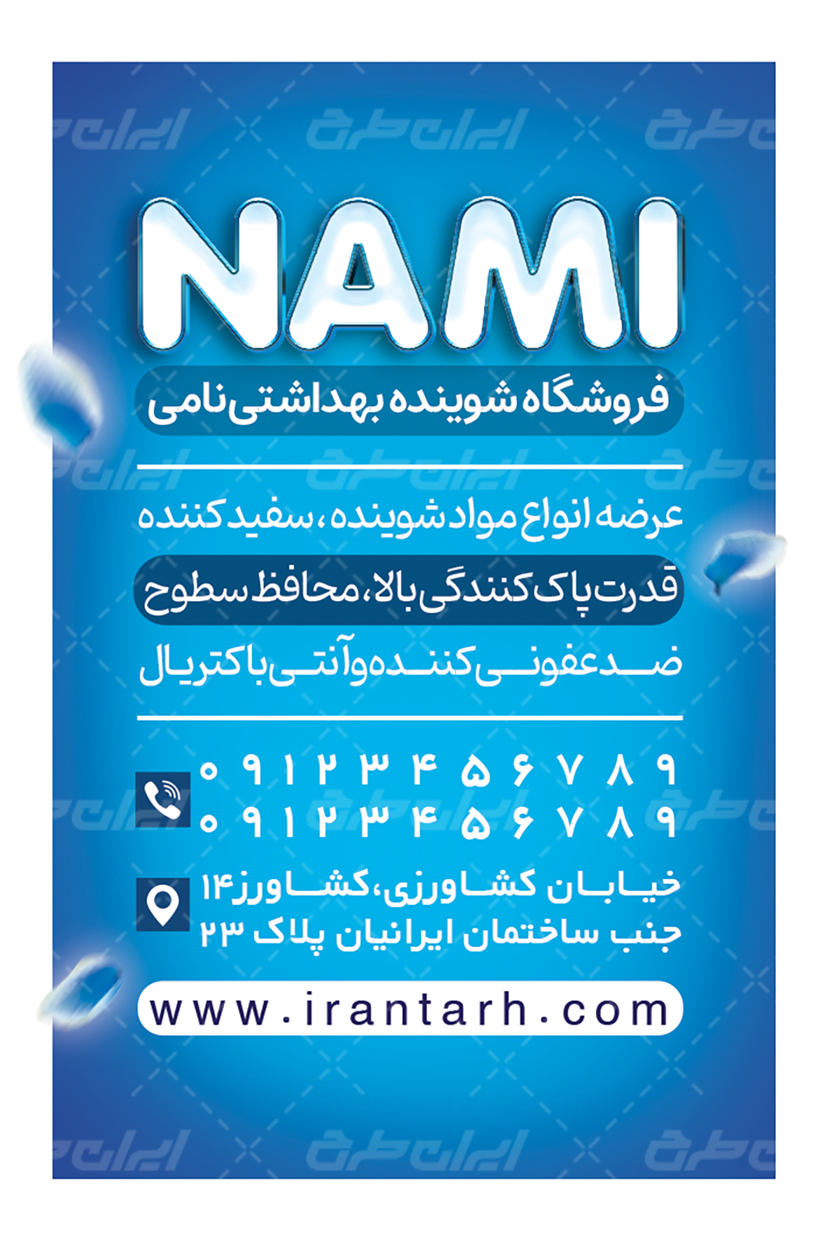 ایران طرح کارت ویزیت فروشگاه مواد شوینده را جهت تبلیغات و بازاریابی این فروشگاه ها طراحی و در دسترس کاربران سایت قرار داده است.