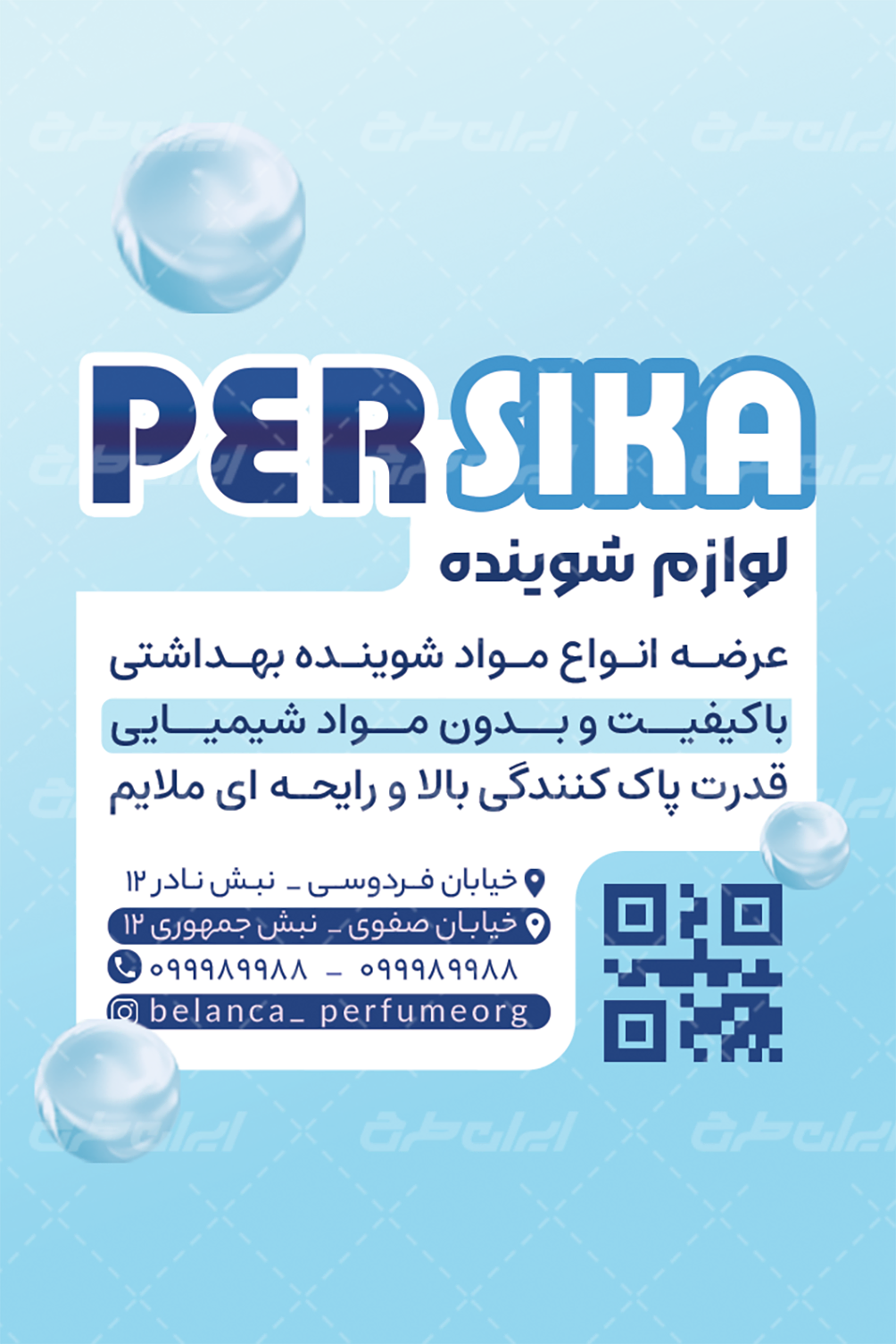 ایران طرح کارت ویزیت فروشگاه مواد شوینده را جهت تبلیغات و بازاریابی این فروشگاه ها طراحی و در دسترس کاربران سایت قرار داده است.