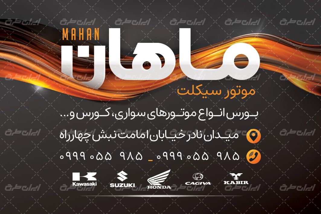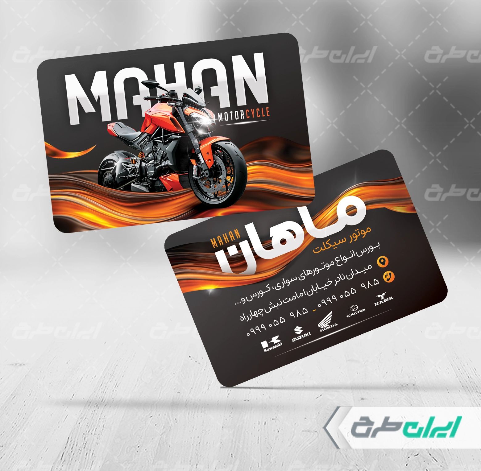 مشخصات فنی طرح لایه باز کارت ویزیت فروشگاه موتور سیکلت