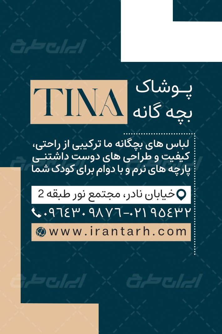 ایران طرح طرح کارت ویزیت فروشگاه پوشاک را جهت تبلیغات و بازاریابی این فروشگاه ها، طراحی و در دسترس کاربران سایت قرار داده است.