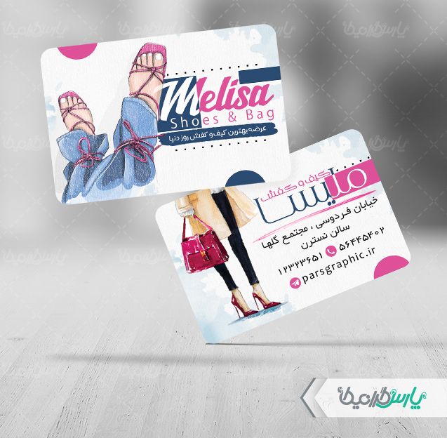 طرح کارت ویزیت گالری کفش، جهت بازاریابی و تبلیغات این فروشگاه ها توسط پارس گرافیک طراحی و در اختیار کاربران سایت قرار گرفته است.