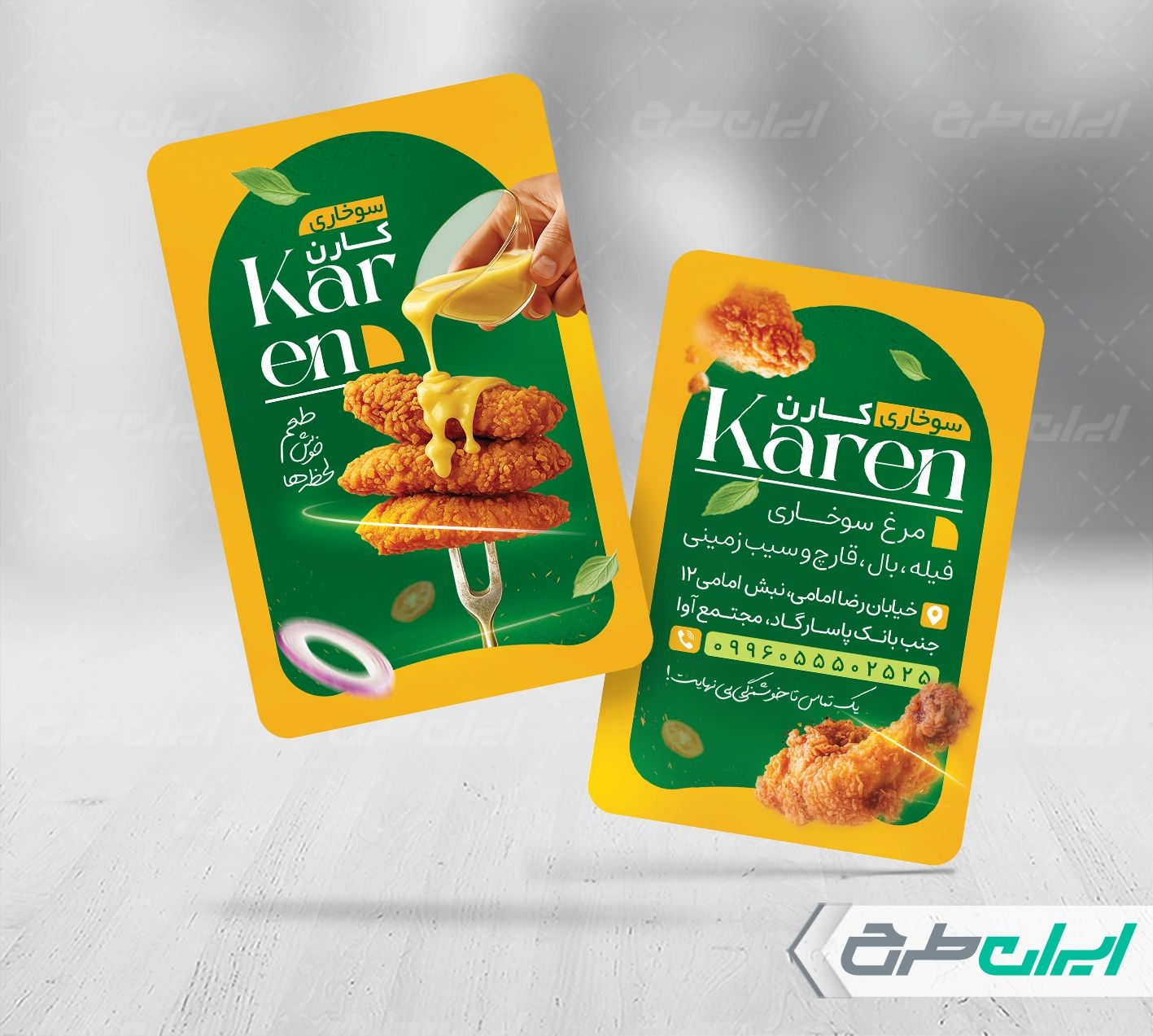 - طراحی کارت ویزیت با استفاده از تصویر مرغ سوخاری