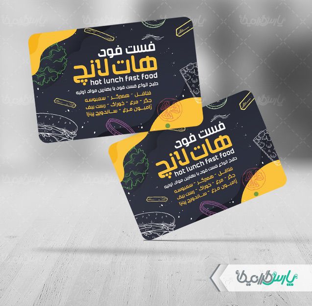 مشخصات فنی طرح کارت ویزیت پیتزا و فست فود