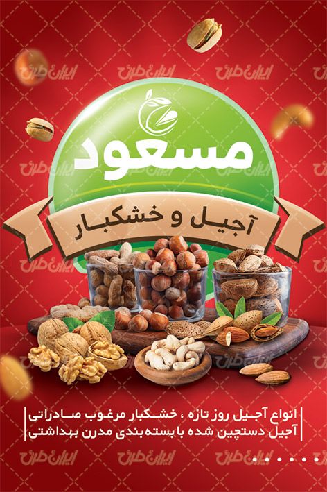- همنشینی مناسب رنگ قرمز با طرح آجیل فروشی