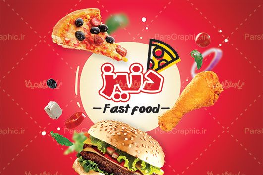 همانطور که در تصویر پیش نمایش مشاهده می کنید طرح کارت ویزیت فست فود بصورت افقی و دو رو طراحی شده و در طراحی آن از تصویر با کیفیت پیتزا و چیزبرگر ، مرغ کنتاکی و سبزیجات استفاده شده . زمینه طرح قرمز بوده و در پس زمینه از بافت چوب استفاده شده است .