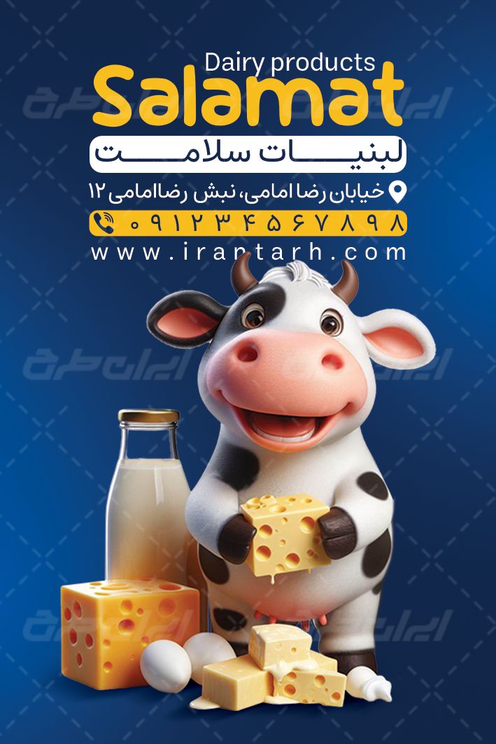طرح لایه باز کارت ویزیت فروشگاه لبنیات، توسط تیم ایران طرح جهت تبلیغات و بازاریابی این مشاغل طراحی و در دسترس کاربران سایت قرار گرفته است.