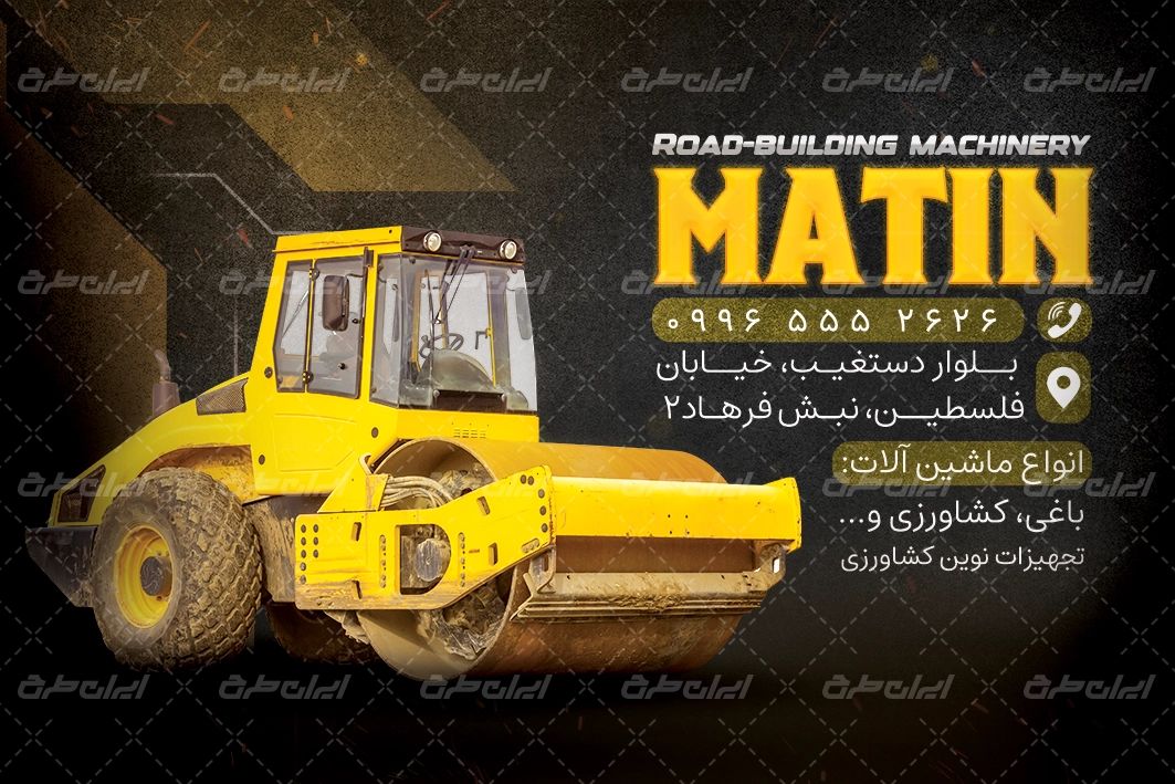 ایران طرح طرح کارت ویزیت ماشین آلات راه سازی را جهت تبلیغات و بازاریابی این دسته از مشاغل، طراحی و در دسترس کاربران سایت قرار داده است.