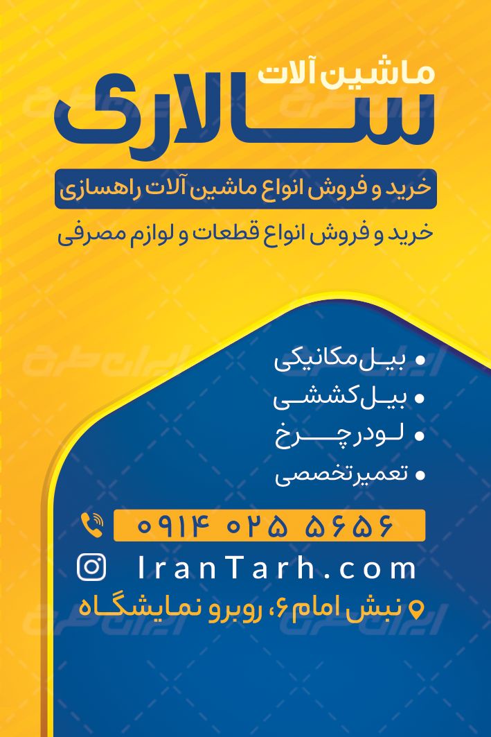 ایران طرح طرح کارت ویزیت ماشین آلات راه سازی را جهت تبلیغات و بازاریابی این دسته از مشاغل، طراحی و در دسترس کاربران سایت قرار داده است.