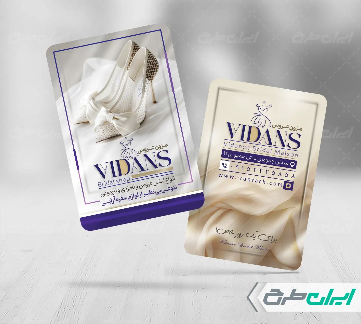 - طراحی شیک و کاربردی کارت ویزیت که مناسب شغل مزون عروس می باشد.