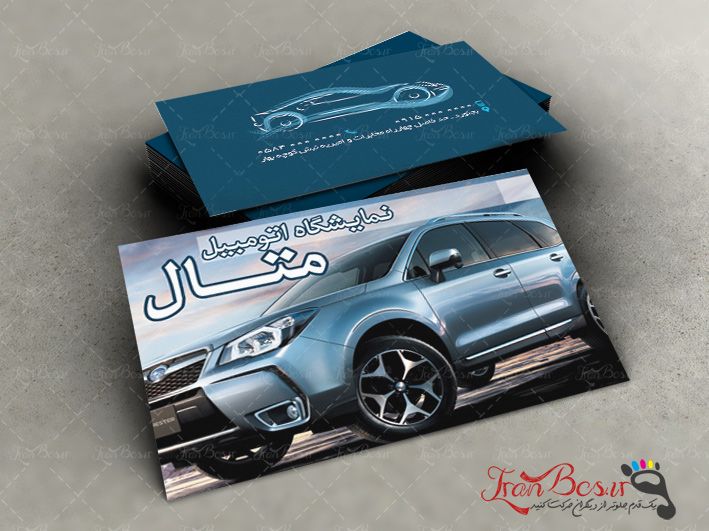 توضیحات : کارت ویزیت نمایشگاه ماشین زمنیه آبی همراه با عکس با کیفیت از ماشین و وکتور ماشین رزولوشن 300 psd
