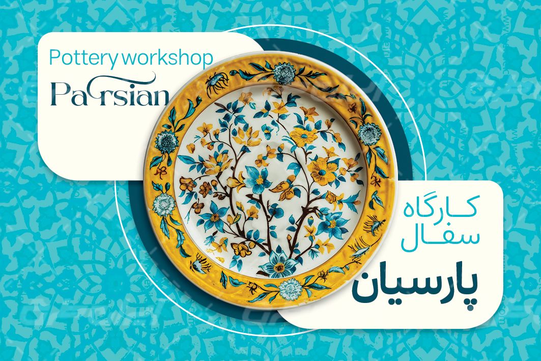 - همنشینی مناسب رنگ آبی با طرح آموزشگاه سفالگری