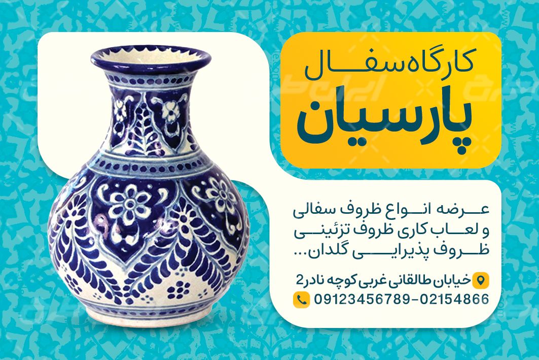 مشخصات فنی طرح لایه باز کارت ویزیت فروشگاه سفال و سرامیک
