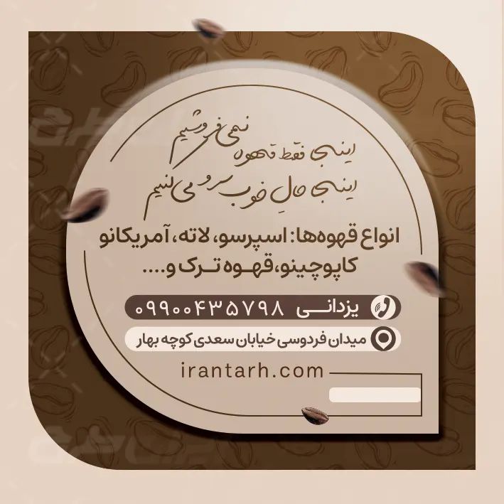 طرح کارت ویزیت کافه قهوه، جهت بازاریابی و تبلیغات این دسته از مغازه ها توسط تیم طراحان ایران طرح طراحی و در دسترس کاربران سایت قرار گرفته است.