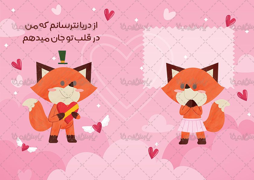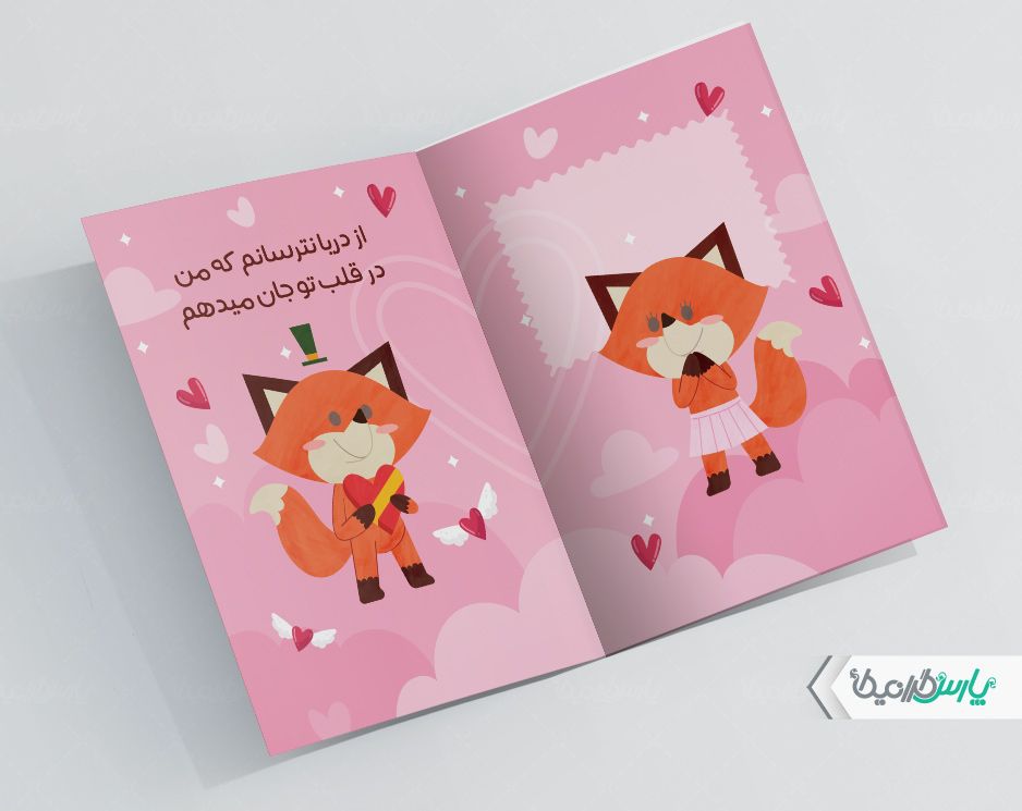 طرح کارت پستال ولنتاین شامل: وکتور روباه ، وکتور قلب، و متن مرتبط با کارت پستال ولنتاین می باشد که توسط طراحان پارس گرافیک در نرم افزار فتوشاپ طراحی شده است. به دلیل لایه باز (قابل ویرایش توسط کاربران در نرم افزار فتوشاپ Adobe Photoshop) بودن و کیفیت بالای عناصر و المان های استفاده شده در طرح کارت دعوت ، می توانید علاوه بر چاپ ، در استوری اینستاگرام و سایر پلت فرم های فضای مجازی استفاده نمایید