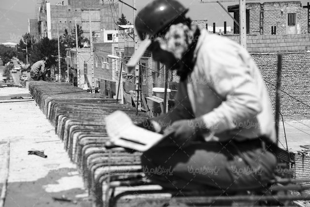 تصویر با کیفیت کارگر آرماتوربند ساختمان .