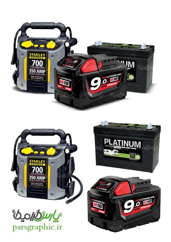 در این فایل png از تصویر دوربری شده انواع باتری ماشین استفاده شده است .