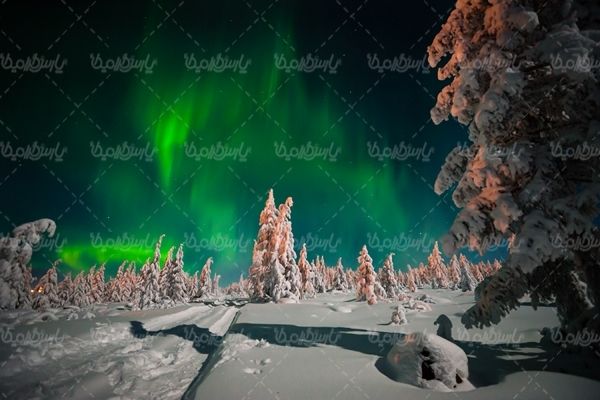 برف زمستان چشم انداز شفق قطبی