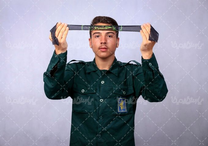 تصویر با کیفیت بستن سربند مرد بسیجی