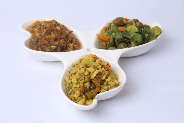 در تصویر بالا ترشیجات گل کلم ، ترشی مخلوط ، زیتون و .. ایرانی را مشاهده میکنید.