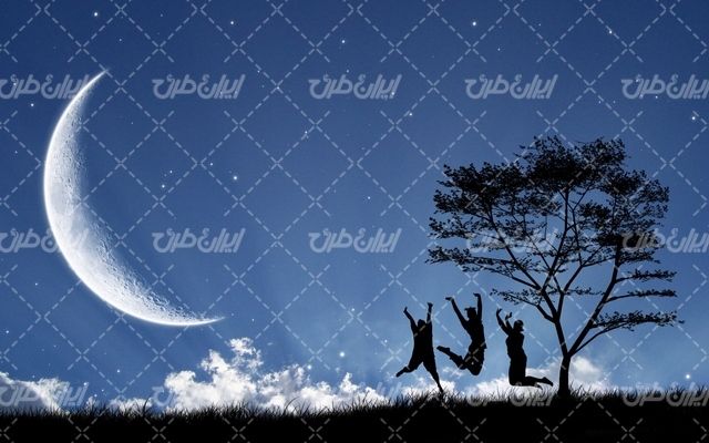تصویر با هلال ماه همراه با منظره زیبا و چشم انداز رویایی