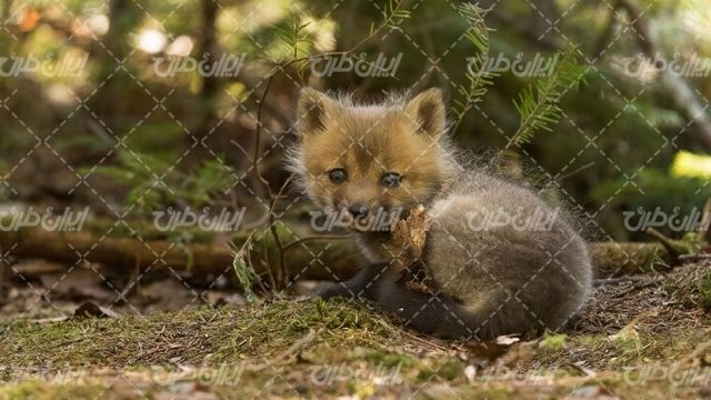 تصویر با کیفیت حیوان همراه با جنگل و توله گرگ