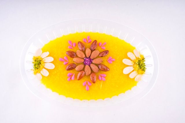 - با استفاده از زعفران، دسر رنگ زرد جذابی دارد و طعم خاصی به آن افزوده میشود.