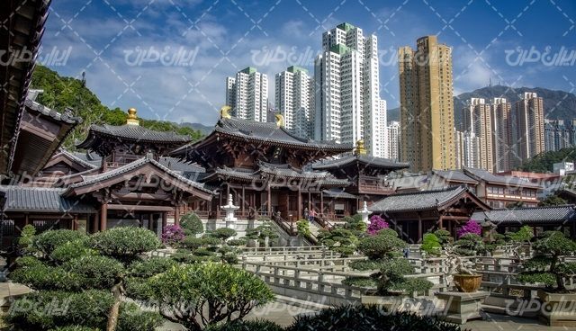 تصویر با کیفیت معماری شهری همراه با ساختمان و معماری چینی