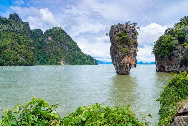 تصویر با کیفیت منظره صخره همراه با چشم انداز زیبایی طبیعت و دریاچه