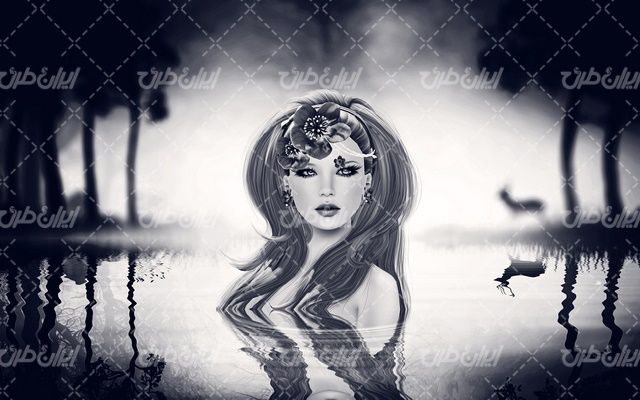 تصویر با کیفیت نقاشی زن به همراه آب و تصویر زیبای دریاچه