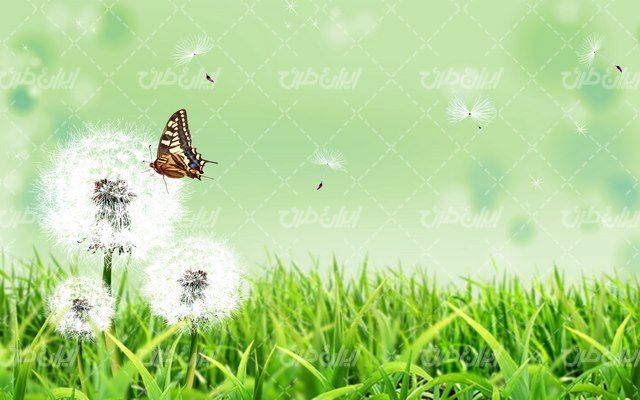 تصویر با کیفیت پروانه به همراه چشم انداز زیبای بهار و طبیعت