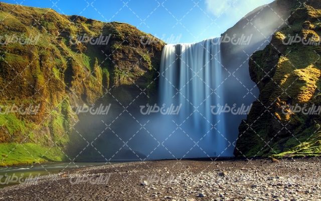 تصویر با کیفیت چشم انداز زیبای آبشار همراه با منظره دیدنی و طبیعت زیبا