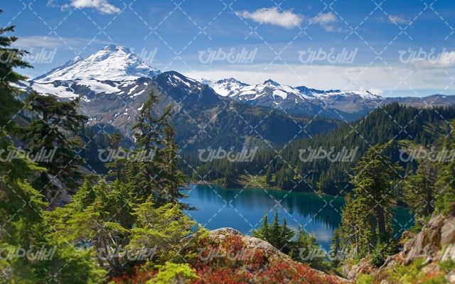 تصویر با کیفیت چشم انداز زیبای دریاچه همراه با منظره دیدینی و طبیعت زیبا