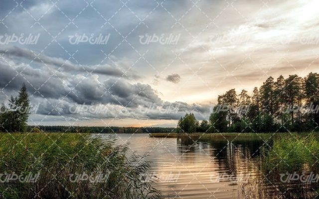 تصویر با کیفیت چشم انداز زیبای دریاچه همراه با منظره دیدینی و طبیعت زیبا