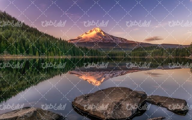 تصویر با کیفیت چشم انداز زیبای دریاچه همراه با منظره و طبیعت زیبا