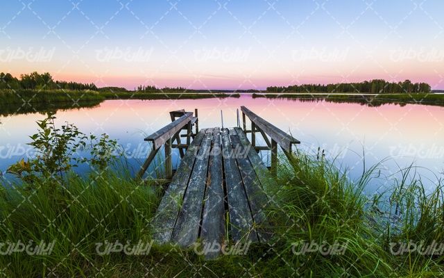 تصویر با کیفیت چشم انداز زیبای دریاچه همراه با منظره و طبیعت زیبا