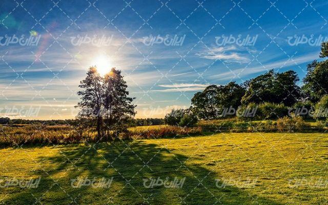 تصویر با کیفیت چشم انداز زیبای غروب خورشید همراه با منظره دیدنی و طبیعت زیبا